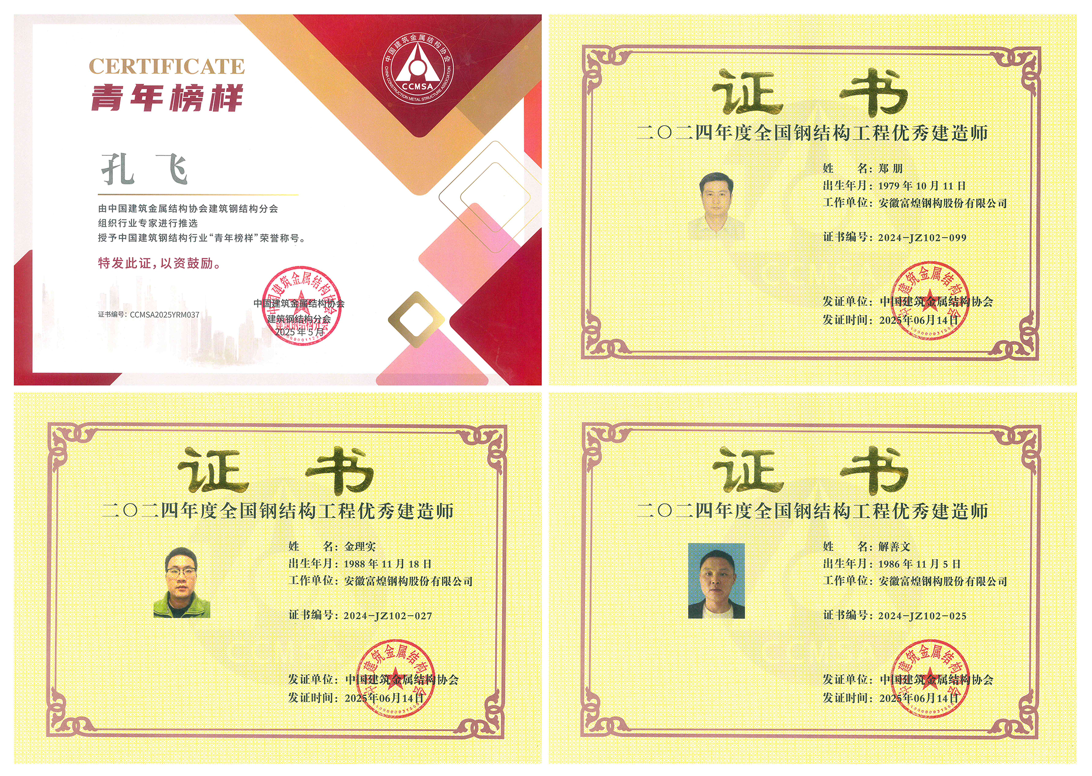 本屆大會以“數(shù)智賦能、協(xié)同創(chuàng)新,實現(xiàn)鋼結(jié)構(gòu)建筑綠色低碳發(fā)展”為主題,積極順應(yīng)科技革命和產(chǎn)業(yè)變革發(fā)展趨勢,以科技創(chuàng)新推動產(chǎn)業(yè)創(chuàng)新,提升鋼結(jié)構(gòu)智能建造質(zhì)量和水平,擴大鋼構(gòu)應(yīng)用領(lǐng)域;圍繞“好房子”建設(shè)、城市更新,堅持標準引領(lǐng)、創(chuàng)新驅(qū)動,不斷提升鋼結(jié)構(gòu)建筑品質(zhì);推進建筑鋼結(jié)構(gòu)全產(chǎn)業(yè)鏈的深度融合,助力鋼鐵和鋼結(jié)構(gòu)產(chǎn)業(yè)的綠色低碳和提質(zhì)增效;推廣綠色建造技術(shù),加快鋼結(jié)構(gòu)產(chǎn)業(yè)工業(yè)化、智能化、綠色化轉(zhuǎn)型,為培育和形成城鄉(xiāng)建設(shè)領(lǐng)域的新質(zhì)生產(chǎn)力做出應(yīng)有貢獻。大會期間,主辦方發(fā)布了多項重要行業(yè)榜單和獎項。其中,富煌鋼構(gòu)憑借突出的綜合實力、卓越的工程質(zhì)量和領(lǐng)先的技術(shù)水平,成功入選“2024年度全國建筑鋼結(jié)構(gòu)行業(yè)綜合實力前50強”企業(yè),承建的紅土創(chuàng)新廣場施工總承包工程(施工)榮獲第十六屆(第一批)中國鋼結(jié)構(gòu)金獎。在個人獎項方面,公司員工孔飛榮獲“中國建筑鋼結(jié)構(gòu)行業(yè)青年榜樣”稱號;解善文、鄭朋、金理實三位項目經(jīng)理憑借在鋼結(jié)構(gòu)工程領(lǐng)域的突出貢獻,獲評“2024年度全國鋼結(jié)構(gòu)工程優(yōu)秀建造師”。