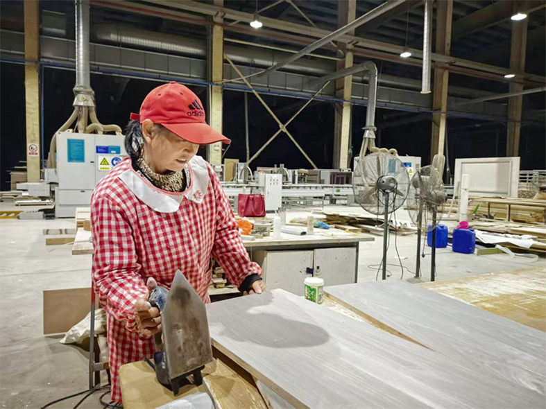 11月28日深夜,安徽富煌木業(yè)有限公司的生產(chǎn)車間依然燈火通明,機(jī)器有序運(yùn)轉(zhuǎn),工人們精神專注,正為太原金茂、亞廈金瀾府、西安大明宮二期、成都金茂、宜昌十里紅酒店五大重點(diǎn)項(xiàng)目工程進(jìn)行連夜趕工,全力保障產(chǎn)品按時(shí)交付。