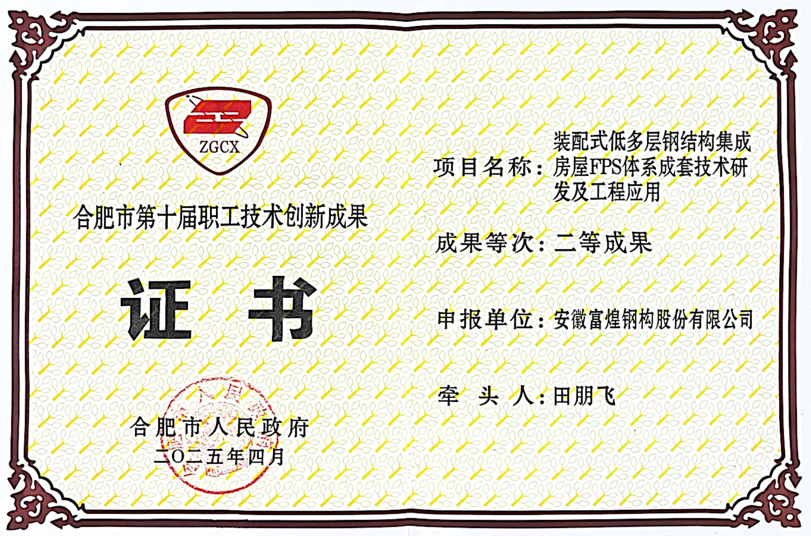 富煌鋼構(gòu)將以此次榮譽(yù)為動(dòng)力,繼續(xù)秉承“科技引領(lǐng)、實(shí)業(yè)報(bào)國”的發(fā)展之路,深耕裝配式建筑領(lǐng)域技術(shù)創(chuàng)新,加速科研成果轉(zhuǎn)化落地。未來,公司將持續(xù)優(yōu)化FPS體系技術(shù)標(biāo)準(zhǔn),深化與產(chǎn)業(yè)鏈上下游協(xié)同創(chuàng)新,為推進(jìn)綠色建筑工業(yè)化、助力鄉(xiāng)村振興和"雙碳"目標(biāo)實(shí)現(xiàn)貢獻(xiàn)富煌智慧。